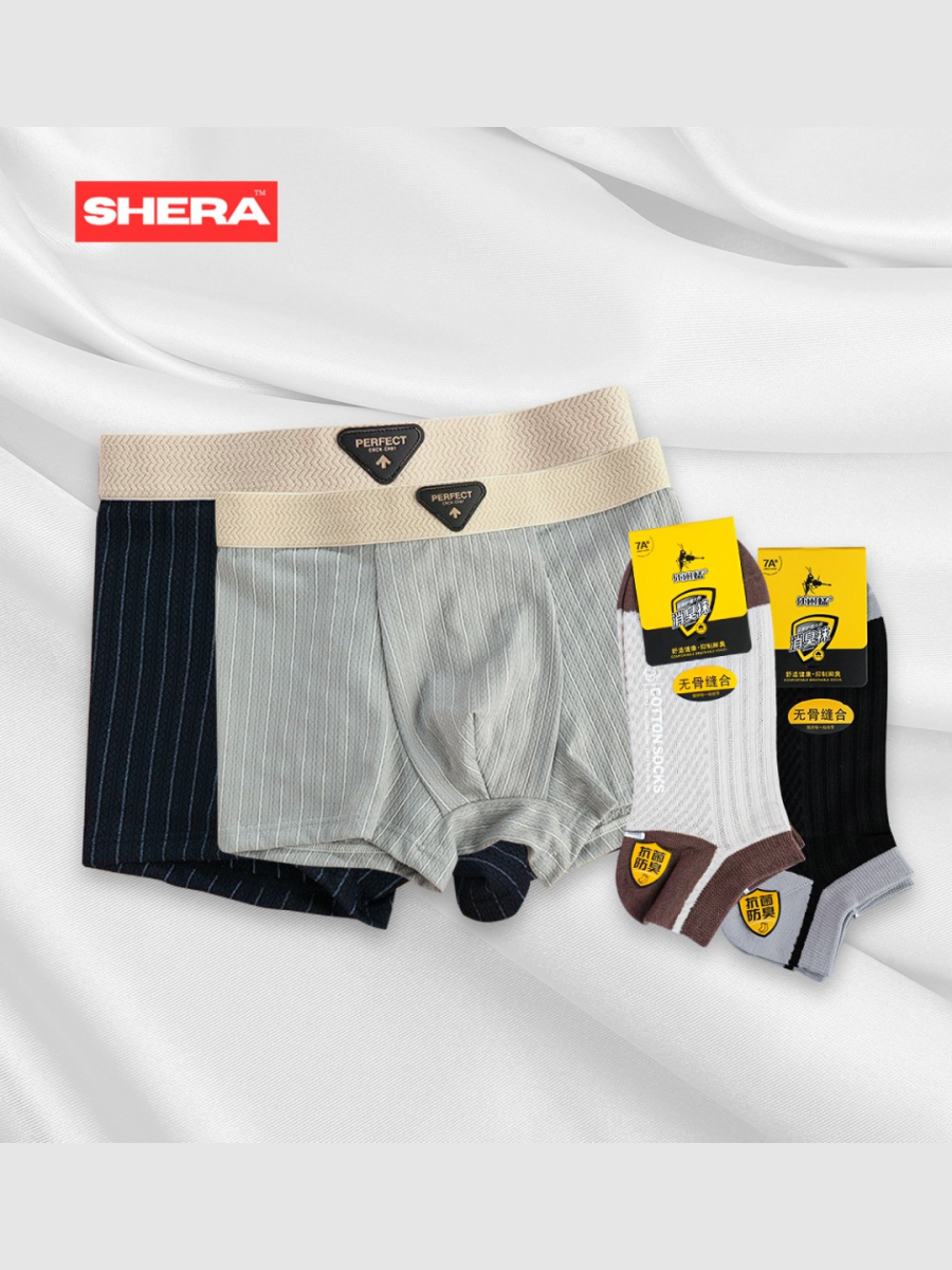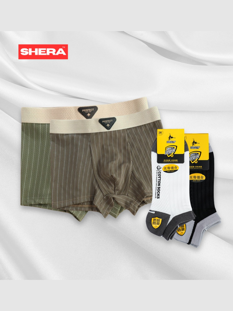 2 Piece Textured Lightweight Boxer + 2 Piece Antibacterial Socks Combo